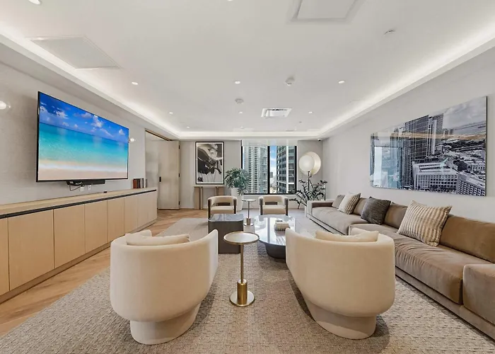 Die Villa im Stadtteil Downtown Miami von Miami liegt nur wenige Schritte entfernt von der Bushaltestelle Biscayne Boulevard & Northeast 6th Street. Die Villa City Scape- Rooftop Pool & Downtown Living befindet sich in unmittelbarer Nähe von kulturellen Sehenswürdigkeiten wie der Fackel der Freundschaft. New World School of the Arts gehört zu den renommierten Bildungseinrichtungen und liegt in 6 Gehminuten Entfernung von der Villa in Miami.